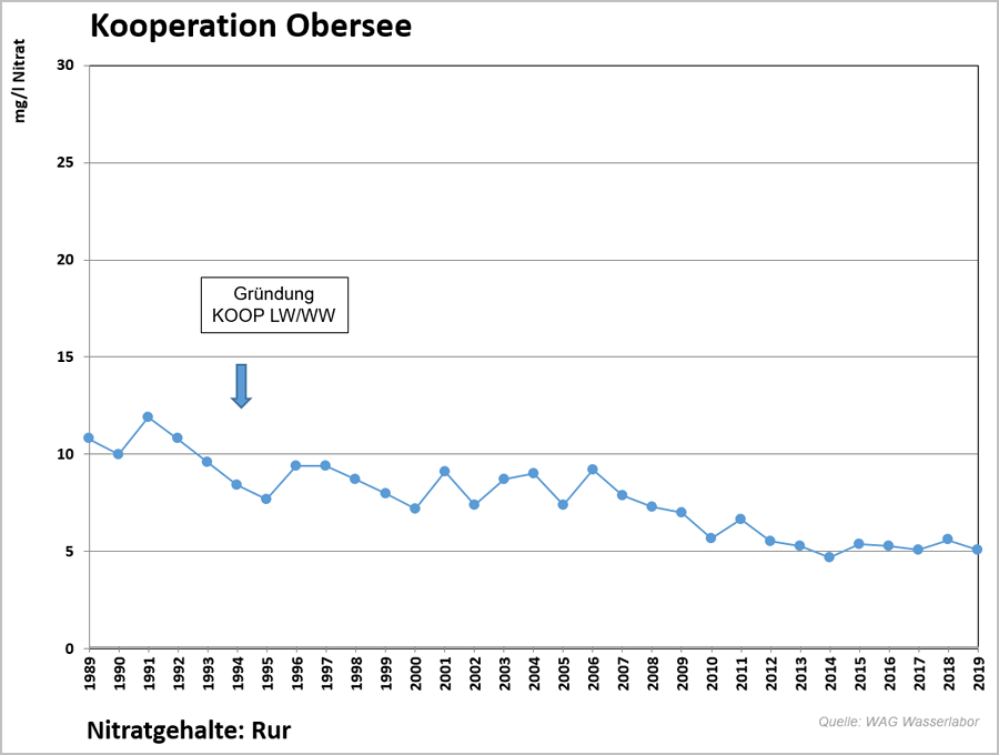 Langzeitauswertung der Nitratentwicklung in dem Gebiet der Kooperation Obersee (1989-2019)