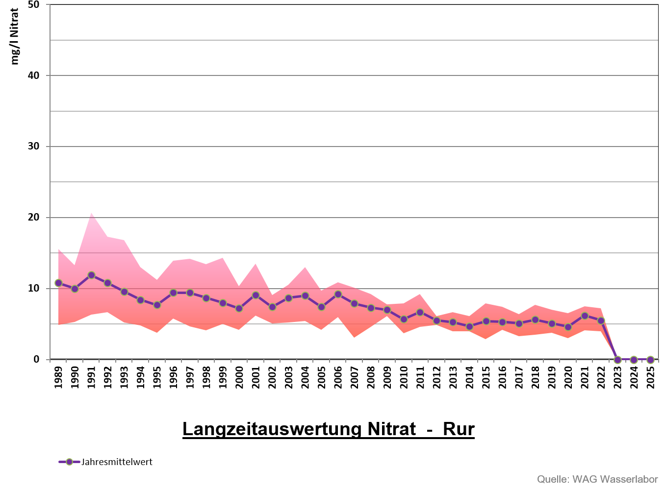 Langzeitauswertung Nitrat im Fluss Rur (1989-2023)