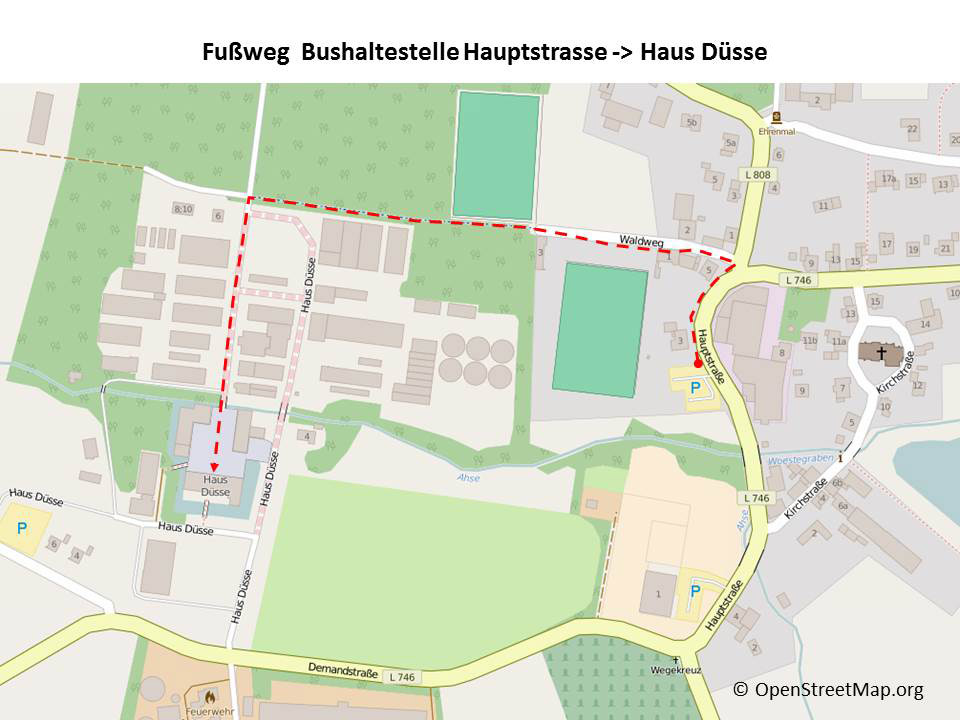 Als Zieladresse wählen Sie bitte "Ostinghausen, Hauptstr.", von dort erreichen Sie zu Fuß (ca. 700 m) Haus Düsse.