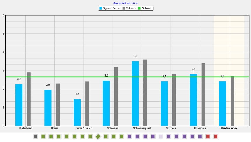 Durch die landwirtschaftlichen Unternehmer kann es auch als zusätzliches Instrument zur gesetzl. geforderten betrieblichen Eigenkontrolle der Tiergerechtheit eingesetzt werden. So wird drei Stunden nach der Futtervorlage der Aufenthaltsort aller Tiere im Stall bonitiert. Es wird erfasst, wie viele Tiere fressen, laufen oder stehen und liegen. Für die Bewertung der Sauberkeit von Kühen wurde ein Hygieneschlüssel entwickelt, welcher sieben Körperregionen und sechs Sauberkeitsstufen umfasst. Das Ziel ist eine über alle Körperregionen hinweg saubere Kuh, was dem Wert "1" entsprechen würde. Eine Verschmutzung bestimmter Körperregionen ist in der Regel auf unmittelbare Einflüsse durch Haltung, Management sowie Fütterung zurückzuführen, so dass mit Hilfe dieses Hygieneschlüssels konkrete Schwachstellen ausgemacht werden können.