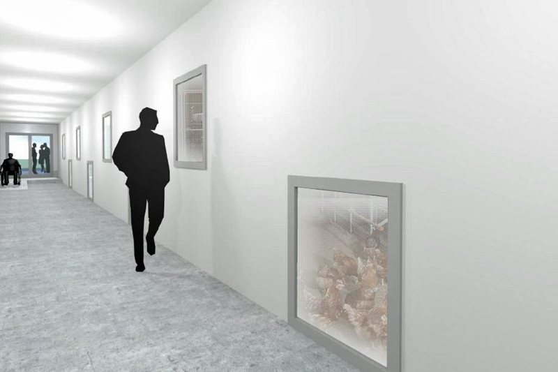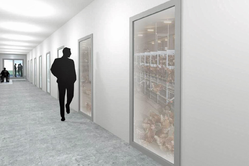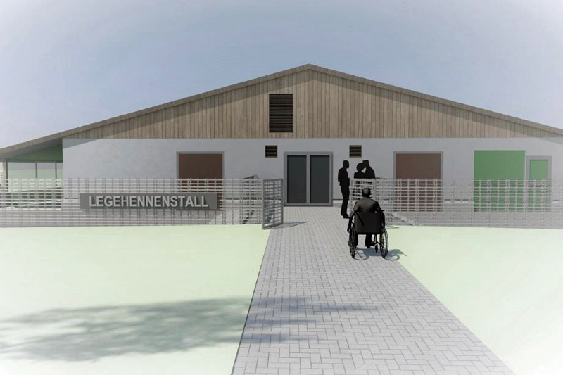 Entwurf für den geplanten Besuchergang mit Einblick in die ein-etagige Bodenhaltung