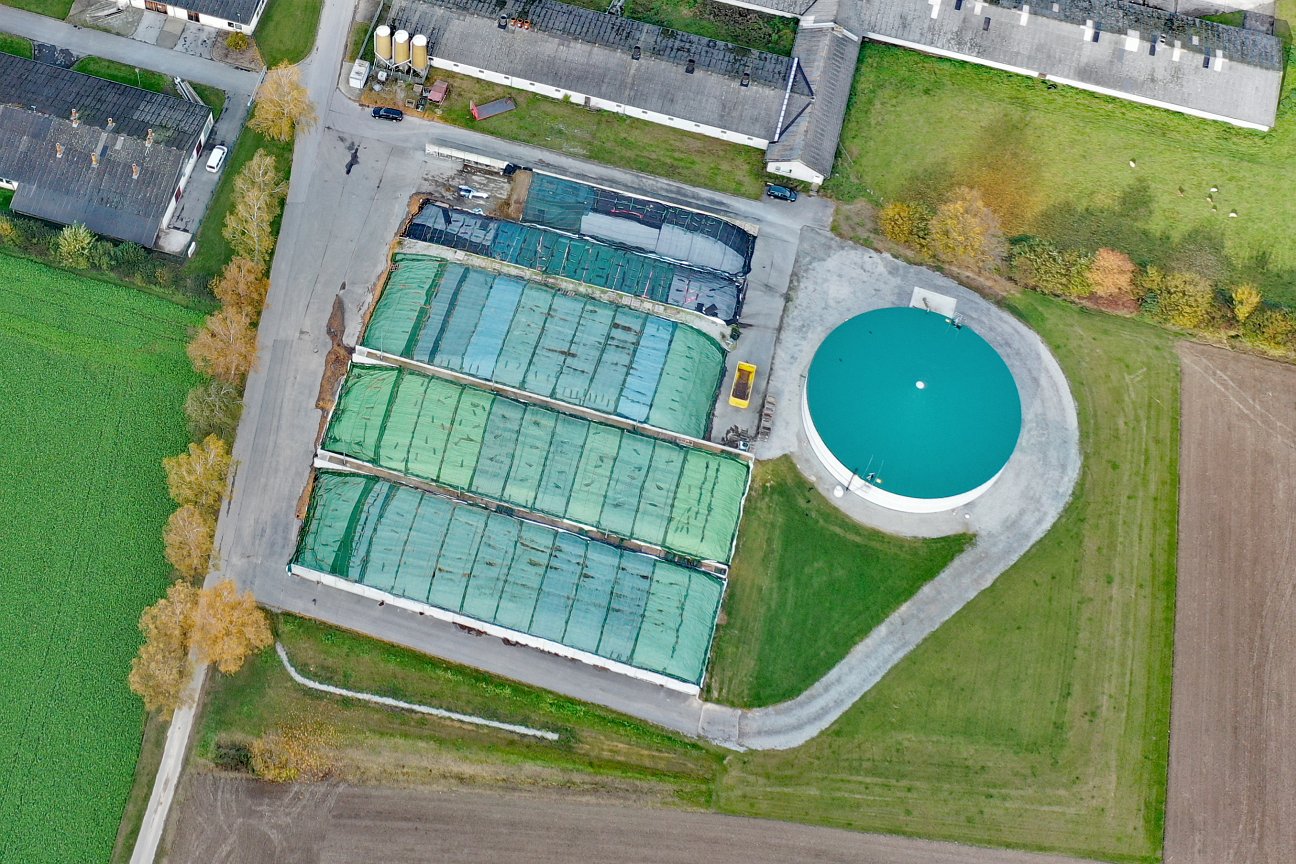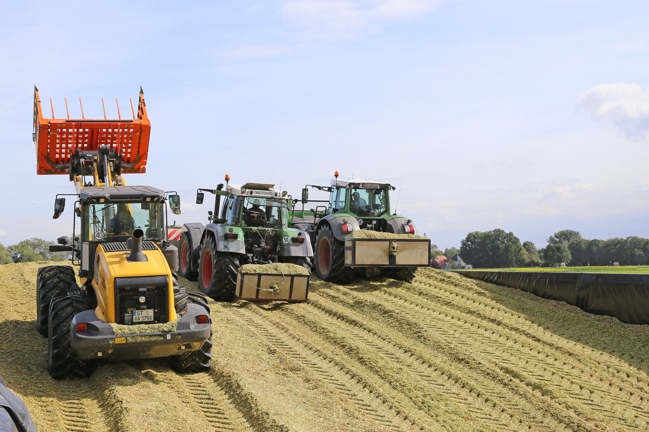 In der Fahrsiloanlage wird Silage für die Rinder und die Biogasanlage gelagert.