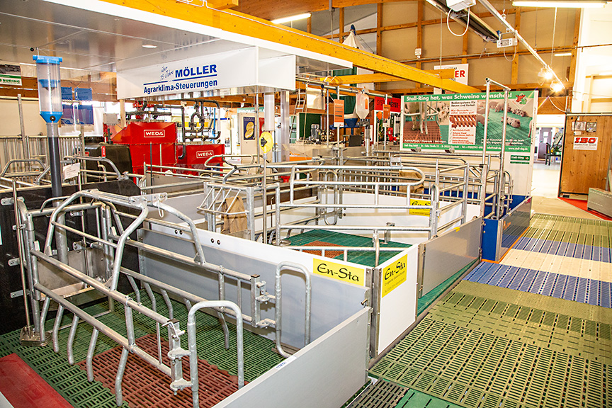 In der Baulehrschau stellen zahlreiche Firmen einige ihrer Produkte für die Rinder- und Schweinehaltung aus.