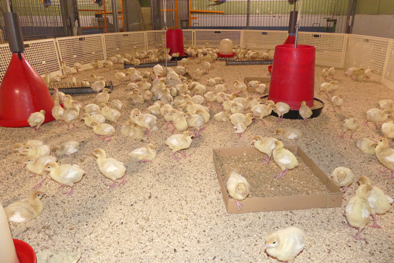 In diesem Stall dreht sich alles um das Thema Geflügel-Mast. Dabei werden im Wechsel Masthähnchen sowie weibliche und männliche Mastputen eingestallt. Im Fokus stehen Versuche zu den Themen Haltung, Genetik und Fütterung, die sich an den aktuellen Themen der Praxis orientieren.