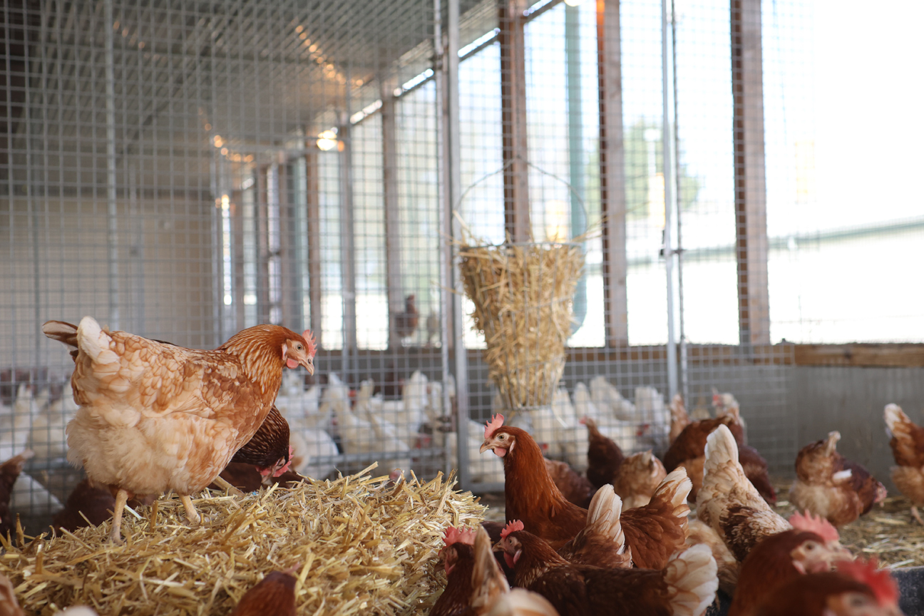 Im Rahmen der Öffentlichkeitsarbeit können hier zwei verschiedene Bodenhaltungssysteme gezeigt werden. Die in Deutschland am häufigsten verbreitete mehretagige Bodenhaltung (Volierenhaltung) und die einetagige Bodenhaltung. Beide Haltungssysteme verfügen zusätzlich über einen Kaltscharraum mit Außenklimabedingungen.