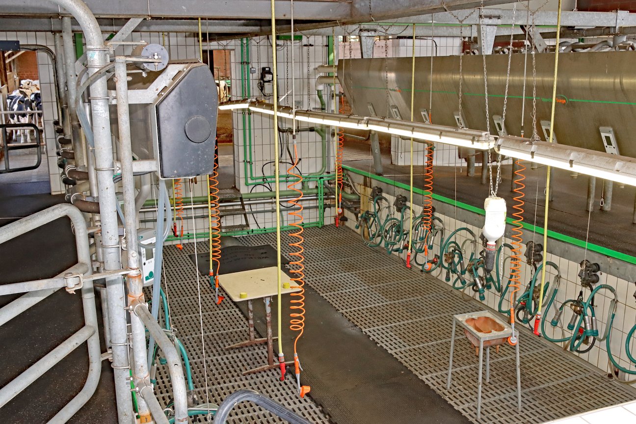 Neben der konventionellen Fischgrätenmelkstand-Variante mit Gruppenaustrieb wurde ein „Side by Side“-Melkstand mit Frontaustrieb eingebaut. Der Melkstand wurde teilunterkellert (Subway).