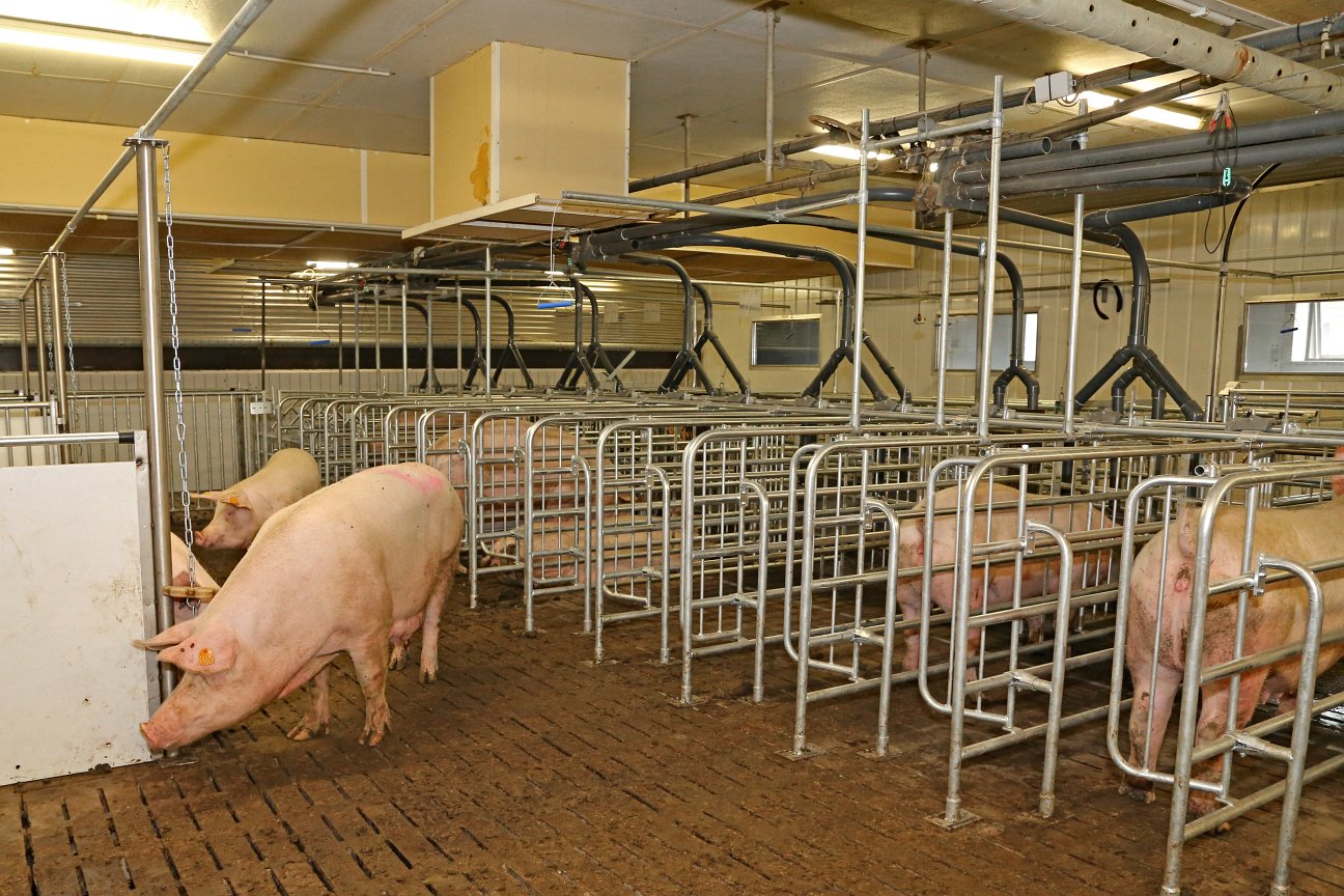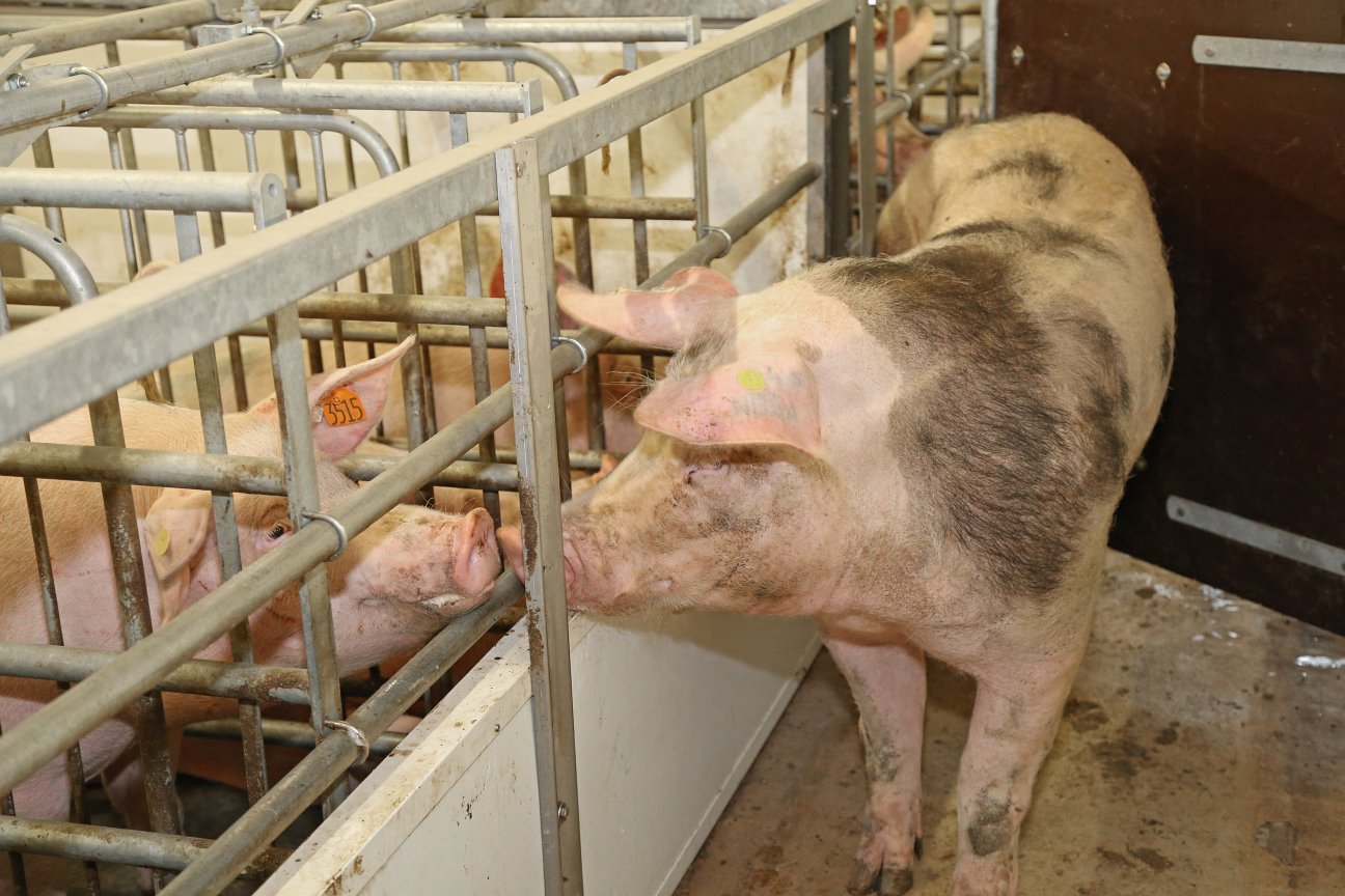 Im Stall für zu belegende Sauen (Deckzentrum) werden die Sauen 4-6 Tage nach dem Absetzten der Ferkel künstlich besamt oder von unseren Zuchtebern belegt. Für die künstliche Besamung können die Sauen kurzfristig in den Kastenständen fixiert werden.