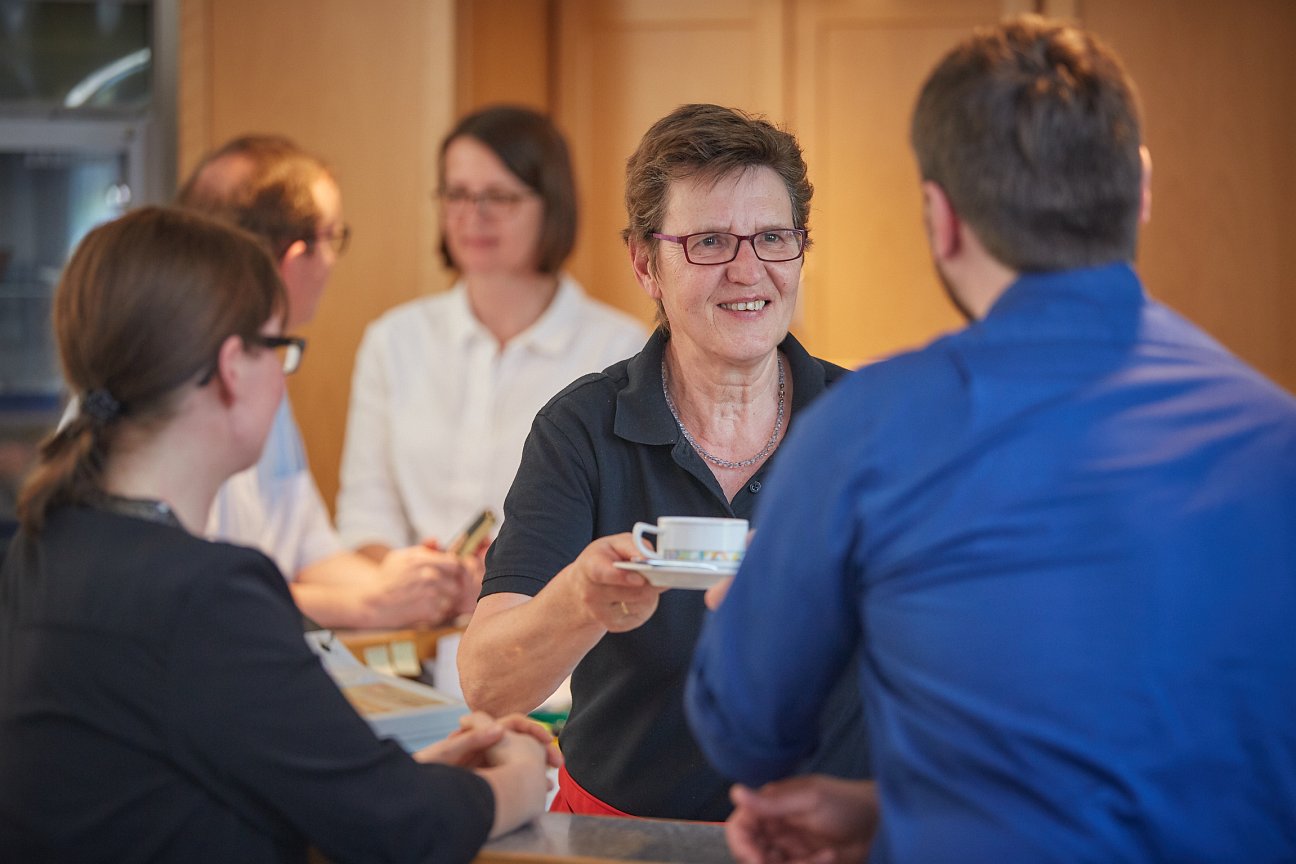 In der Cafeteria werden täglich Kaffee und Kuchen angeboten.