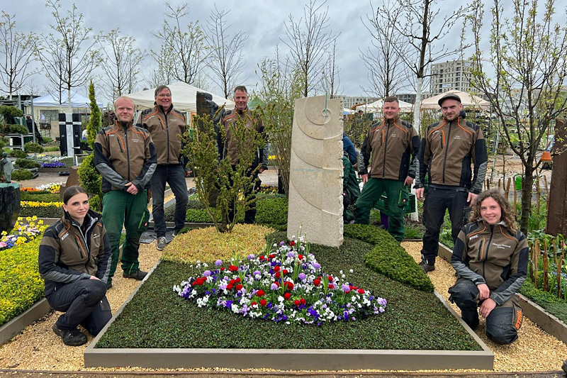 Die Fachschülerinnen und Fachschüler in der Fachrichtung Friedhofsgärtnerei gestalteten im Wettbewerb „Grabgestaltung und Denkmal“ auf der Bundesgartenschau Mannheim 2023 (BUGA) ein zweistelliges Wahlgrab. Lohn der Mühe: Eine der begehrten Goldmedaillen. 41 der besten Friedhofsgärtnereien aus ganz Deutschland messen sich in Mannheim in ihrem Wettbewerb, der unter Kennern als einer der schwersten auf einer BUGA gilt. „Gärtnerische Höchstleistungen, farbenprächtige Pflanzen und viel Fingerspitzengefühl - all das und noch vieles mehr dürfen Sie von der größten friedhofsgärtnerischen Leistungsschau in ganz Deutschland erwarten“ – so formuliert es der Bund deutscher Friedhofsgärtner (BdF) im Zentralverband Gartenbau e.V. (ZVG) völlig zu Recht.