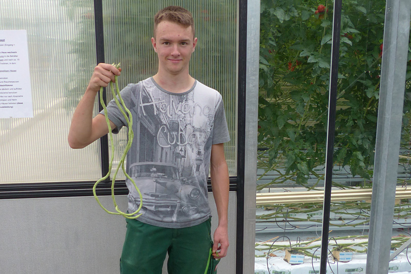 10 Azubi Justin zeigt wie lang die Bohnen werden können