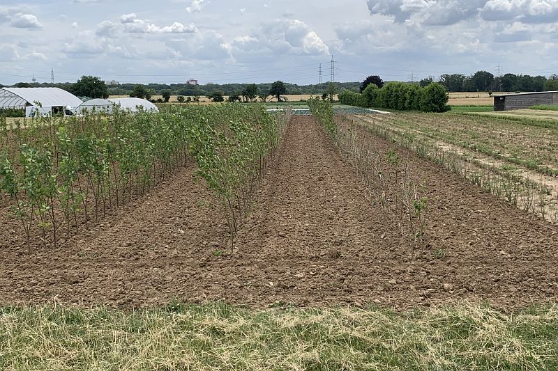 Im Klimahain am Standort Auweiler werden 21 Baumarten auf ihre Eignung als klimatolerante Stadtbäume geprüft.