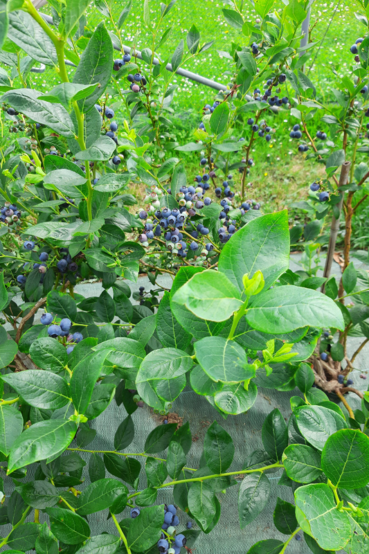 Heidelbeeren werden Ende Juni sowohl im Tunnel, als auch im Freiland geerntet.
