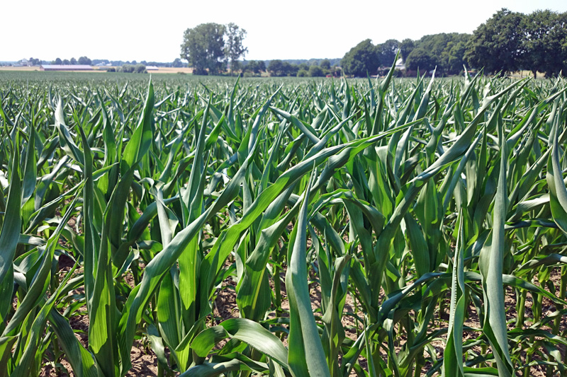 Insbesondere im Münsterland, wo auf leichtem Boden der Mais einen hohen Anteil an der Fruchtfolge hat, äußerte sich das Wasserdefizit in deutlichen Stresssymptomen. Aber auch die anderen Reihenkulturen Kartoffeln und Zuckerrüben auf den schwereren Böden haben deutlich gelitten. Die nutzbare Feldkapazität im Krumenbereich lag landesweit deutlich unter 30 % im letzten Viertel des Beobachtungszeitraums! Verdunstungsraten von bis zu fünf Millimetern pro Tag bei diesen Kulturen haben letztendlich zu dem eigentlichen Wasserstress geführt. Verglichen mit dem langjährigen Mittel an Niederschlägen an den Wetterstationen in NRW gab es mit durchschnittlich gemessenen 46 Millimetern nur die Hälfte an Wasser. Zumindest kam es ab Mitte Juni zu einer deutlichen Erhöhung der Bodentemperaturen und die Nachttemperaturen waren nicht mehr einstellig wie zuvor. Abgesehen vom fehlenden Niederschlag war dieser Umstand förderlich für die bis dahin eher bescheidene Entwicklung der Sommerungen. Auch die Mineralisation wurde dadurch weiter gefördert. Auswaschung von Nitratstickstoff war unter den beschriebenen Umständen nur regional nach kräftigeren Gewitterschauern ein Thema.