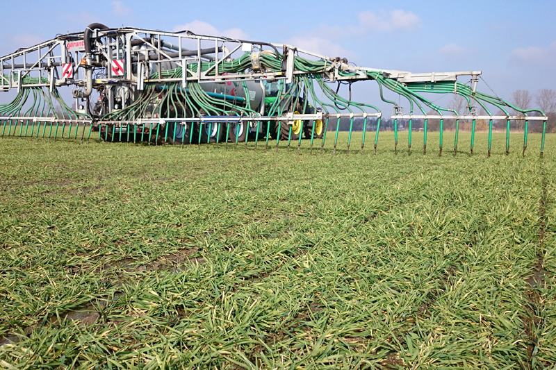 Eine Andüngung der Winterungen war in vielen Fällen aufgrund von an Stickstoff entleerten Oberböden sinnvoll. Die Gelegenheiten einer Befahrbarkeit der Böden sollte daher unbedingt ausgenutzt werden. Die kühle Witterung und noch kühlen Böden haben das Wachstum und damit die Aufnahme von Stickstoff in den letzten Wochen jedoch sichtbar ausgebremst. Auch die Mineralisierung von organischem hin zu mineralischem Stickstoff durch die Mikroorganismen sowie die Nitrifikation (Umwandlung von Ammoniumstickstoff zu Nitratstickstoff durch Bakterien) von appliziertem Ammoniumstickstoff dürfte durch die vorherrschenden Bedingungen der letzten Wochen gehemmt gewesen sein. Bei einem bis zum jetzigen Zeitpunkt noch nicht angekündigten Wärmeschub werden alle Kulturen bei bereits deutlich längeren Tageslichtverhältnissen an Wachstum zulegen und den Stickstoff dringend benötigen. Auch die Mineralisation von abgestorbener Biomasse, z.B. die der Winter-Zwischenfrüchte und die Nitrifikation werden dann schnell an Fahrt aufnehmen und auf diesem Wege den Pflanzen zusätzlich schnell verfügbaren Stickstoff bereitstellen.