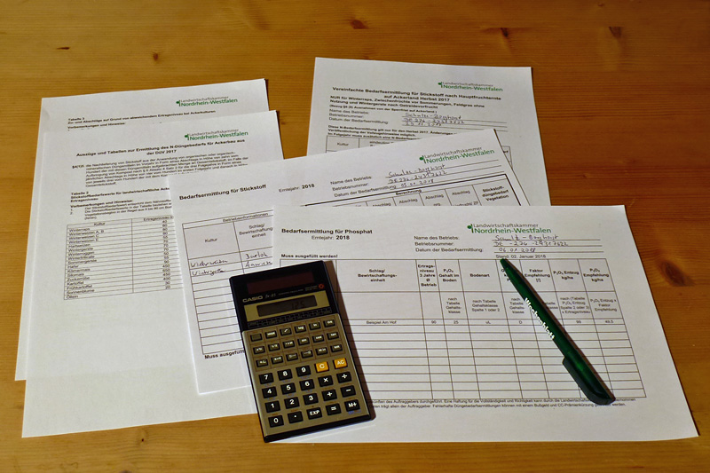 Papierformulare zur Düngebedarfsermittlung und Düngedokumentation