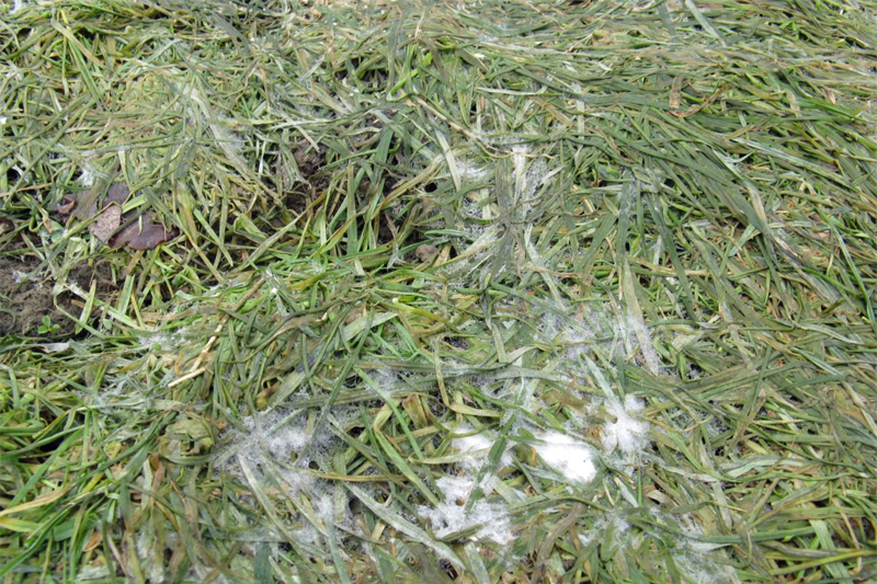 Nach Ende des Winters erscheint die Grünlandnarbe oft in einem trübseligen Zustand. Durch abgestorbene Blätter aber auch Moosbildung oder auf feuchten Standorten häufig durch die stark vertretene Gemeine Rispe, kommt zu einer mehr oder weniger starken Verfilzung der Grasnarbe. Diesen Filz gilt es am effektivsten mit einem Grünlandstriegel „herauszukämmen“, damit frühzeitig Licht auf die Narbe einwirken kann. Diese Maßnahme hat den Effekt, dass die vorhandenen Gräser früher und stärker assimilieren und dadurch wieder schneller regenerieren und wachsen. Den gleichen Effekt hat das Striegeln, wenn gerade auf Grünland verstärkt Schneeschimmel auftritt. Schneeschimmel ist ein Fusariumpilz, der insbesondere dann auftritt, wenn Grünlandbestände zu üppig in den Winter gegangen sind und längere Zeit unter einer Schneedecke lagen. Nach der Schneeschmelze zeigt sich unter solchen Bedingungen der oft typische weißliche Myzelbelag, der den Wiederaustrieb behindert und letztlich im weiteren Vegetationsverlauf eine Ertrags- und Qualitätsrelevanz haben kann. Zeitiges Striegeln ist hier angezeigt um abgestorbenes Pflanzenmaterial zu verteilen. Bei starkem Schneeschimmelbefall im Frühjahr sollte aber besser nicht gestriegelt werden, damit die Pilzinfektion nicht über den gesamten Bestand verteilt wird. Eine frühzeitige Stickstoffdüngung und, falls angezeigt das Walzen, regt das Pflanzenwachstum und damit die Regenerationsfähigkeit des Bestandes an.