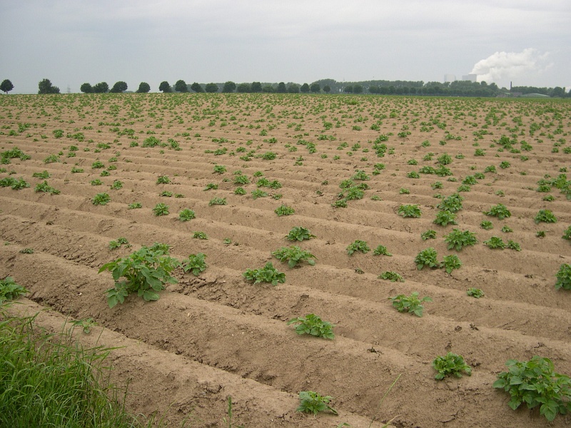 All diese Startschwierigkeiten ließen eine verhaltene Knollenentwicklung erwarten und dementsprechend wurde der Knollengröße in den späten Sorten zu Beginn der Blüte noch keine Beachtung geschenkt. Umso überraschender waren die ersten Feldbegehungen Mitte Juli, wo einzelne Sorten des Anschlussbereichs bereits hohe Anteile an Übergrößen gebildet hatten, obwohl die Bestände noch grün im Laub waren. Weswegen kam es bereits so früh und nach kurzer Vegetationszeit zu so großen Knollen? Die Grundlagen wurden bereits durch das kühle und feuchte Frühjahr gelegt, welches alle Voraussetzung für ein schnelles Wachstum der Knollen bot. Kein Wassermangel wie in 2011, helle Tage und kühle Nächte garantierten eine hohe Stärkebildung und auch die Krankheitsseite bremste die Entwicklung zu Beginn nicht. Daher wurden viele Kartoffelbauern von der Entwicklung ihrer Bestände überrascht und leiteten bereits ungewöhnlich früh reiferegulierende Maßnahmen ein.