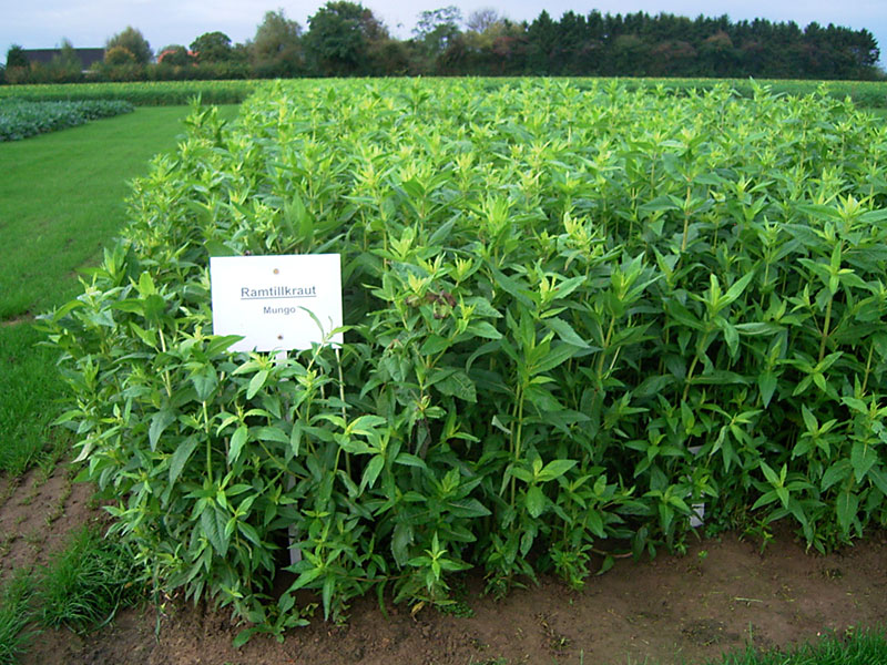 Von den Züchtern wird ständig daran gearbeitet, die Palette der infrage kommenden Arten zu erweitern. Hierzu zählt das Ramtillkraut. Ramtillkraut (Guizotia abyssinica) wurde mit der Sorte Mungo in den vergangenen zwei Jahren auf dem Zwischenfruchtversuchsfeld in Kalkar-Neulouisendorf getestet. Im Vergleich zu Raps, Ölrettich und Senf startet das Ramtillkraut zunächst mit etwas verzögerter Anfangsentwicklung. Mit Beginn des Reihenschließens holten die Bestände aber sehr zügig in der Entwicklung auf und lieferten dann bei der Ernte sehr hohe Erträge. Da die Bestände bei Frost deutlich früher zusammenbrechen als Senfbestände, erscheint das Ramtillkraaut weniger geeignet als Vorfrucht vor Mulchsaaten, sondern ist vielleicht eher eine ertragsstarke gesunde Zwischenfrucht für die Biomasse- und Futterproduktion.