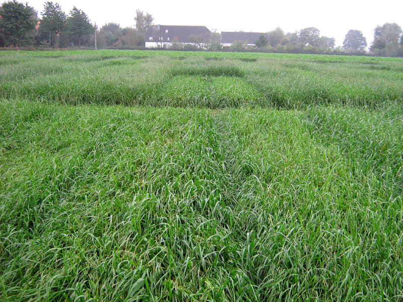 In einem fünfjährigen Zwischenfruchtversuch am Niederrhein konnten daher auch deutliche Unterschiede der einzelnen Arten im Vorfruchtwert bestätigt werden. In diesem Versuch wurde der Aufwuchs der verschiedenen Zwischenfrüchte in einer Variante zur Futternutzung abgeerntet, in der anderen Variante zur Gründüngung eingearbeitet und die Auswirkungen auf den Ertrag von Sommergerste als Folgefrucht gemessen (siehe Tabelle 1). Die differenzierte Analyse des Vorfruchtwertes der Wurzeln und Stoppeln oder des Aufwuchses zeigen, dass Welsches Weidelgras und Winterrübsen einen besonders hohen Vorfruchtwert der Wurzel- und Stoppelrückstände aufweisen, was den besonderen Gründüngungswert dieser beiden zur Futternutzung angebauten Arten begründet. Die Einarbeitung des Aufwuchses hingegen bringt bei diesen beiden Arten im Vergleich zu den übrigen Arten nur noch einen vergleichsweise geringen zusätzlichen Effekt.