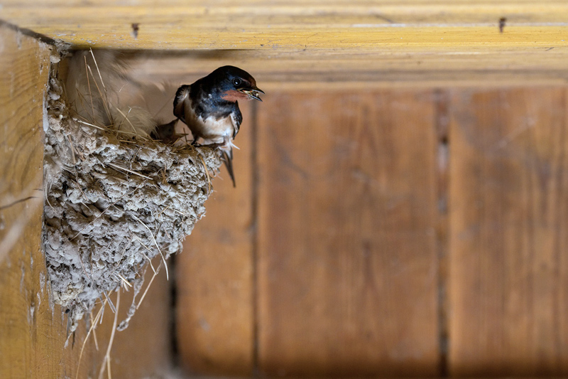 Rauchschwalben brüten gerne in Stallungen, wobei ihre Verwandten - die Mehlschwalben - Häuserfassaden zum Brüten bevorzugen.