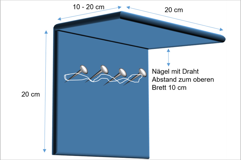 - Das Brett in einem schrägen Winkel anbringen, damit Fressfeinde weniger Halt haben und Tauben es nicht als Lande- oder Brutplatz nutzen können