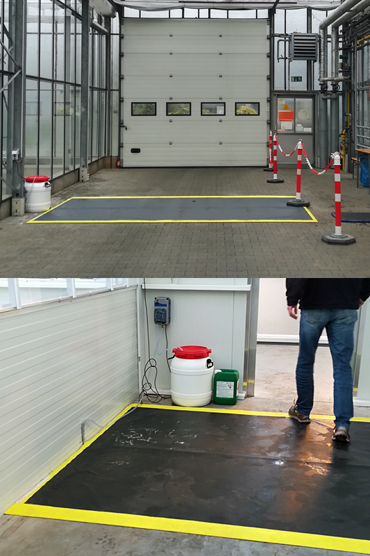 - an schwer zu erreichenden Bereichen (z. B. Bewässerungsstecker, Stützen der Heizschienen, Endstücke der Bewässerung, Drainage-Rücklauf-System, etc.)
