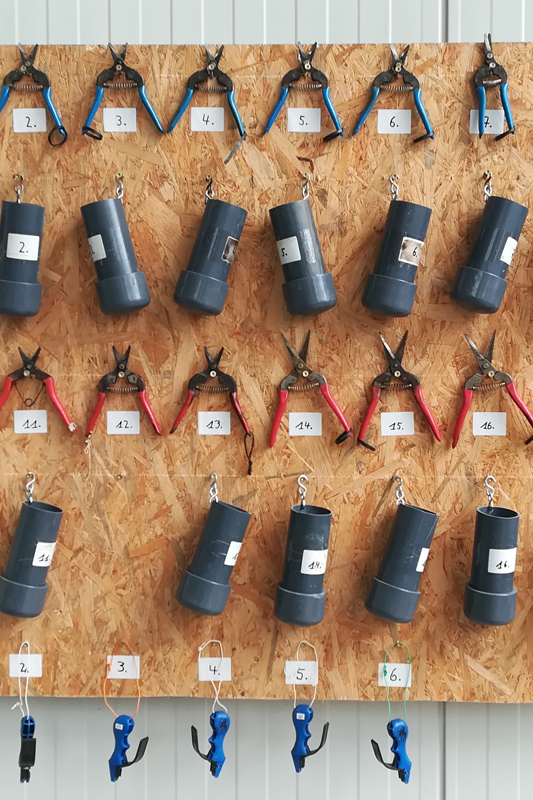 | Wunden durch Kulturarbeiten | Blätter schneiden, Ernten, Ausgeizen 2) | Zwischendesinfektion der Hände (und/oder Handschuhe) und Messer/Scheren => Werkzeuge verbleiben in der gleichen Abteilung/Schiff/Reihe |