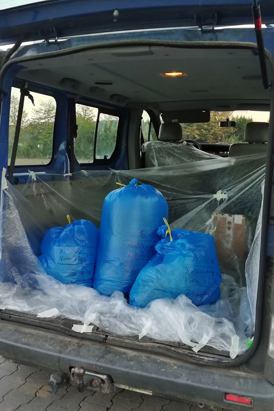 Probenmaterial unbedingt vor Ort im Bestand sicher in Plastiktüten verpacken, das heißt nicht lose durch den Betrieb tragen!