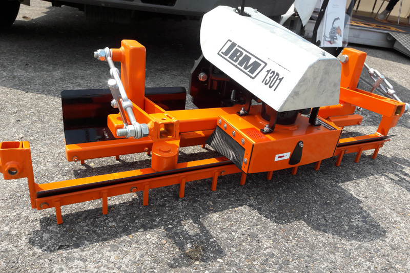 Doppel-Egalisierrechen mit je nach Typ 24 bis 48 Eggenzinken, doppelgelagerten Hubarmen, Getriebeblock, Planierschild und wahlweise Glattlochwalze (Durchmesser 33 cm), Räumschild oder Bürste; zwei Frontstützrollen sowie wahlweise Kantenbrecher |