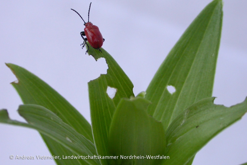 Wenn Blätter von Stauden und Gewürzkräutern runde Löcher oder andere Fraßschäden aufweisen, waren vermutlich Blattkäfer am Werke. Je nach auftretender Käferart können sowohl relativ kleine runde bis rundlich ovale Löcher verursacht werden, bis hin zu stärkeren Fraßschäden im Blattrandbereich. Einige Käfer verursachen auch einen Fensterfraß.
