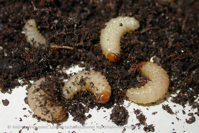 Von vorrangiger Bedeutung ist die Bekämpfung der Larven, da diese den größten Schaden anrichten (Wurzelfraß). Eine Bekämpfung lässt sich hier mit Hilfe von insektenpathogenen Nematoden (Fadenwürmer) durchführen, die in Wasser gegeben werden und dann mit einer Gießkanne ausgebracht werden können. Der Einsatz ist im Frühjahr ab einer Bodentemperatur von über 12 °C möglich.