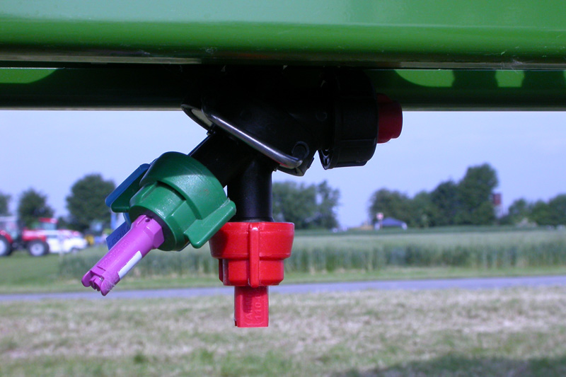 Seit einiger Zeit können auch die sogenannte Schrägstrahldüsen oder asymmetrische Randdüsen (IS, IDKS, AirmixOC bzw. AIUB) in Kombination mit den entsprechenden Injektordüsen zur Reduzierung der Abdrift eingesetzt werden. Dies ist nicht nur eine Möglichkeit für Sonderkulturbetriebe zur beetgenauen Applikation, sondern stellt auch eine Möglichkeit dar, zu sensiblen Nachbarkulturen eine randscharfe Applikation durchzuführen.