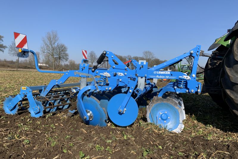 Lemken Rubin 10 (in Moers und Gescher): Die Kompaktscheibenegge Rubin 10 von Lemken zeichnet sich durch die im Durchmesser 645 mm großen Scheiben aus. Die 24 Scheiben bei der angebauten 3 Meter breiten Maschinen können in einem Tiefenbereich von 5 bis 14 cm arbeiten. Ein weiteres markantes Merkmal der Rubin 10 ist die X-förmige Anordnung der Scheiben. Während bei anderen Scheibeneggen üblicherweise die gesamte vordere und hintere Scheibenreihe in eine Richtung angestellt ist – V-förmige Scheibenanordnung –, ist die vordere und hintere Scheibenreihe bei der Rubin 10 in der Mitte geteilt. Konkret bedeutet das, dass die vordere Scheibenreihe den Boden nach links und rechts außen, die Hintere von außen nach innen wirft. Hierdurch wird Seitenzug, der bei üblichen Scheibeneggen mehr oder minder stark auftritt, verhindert.