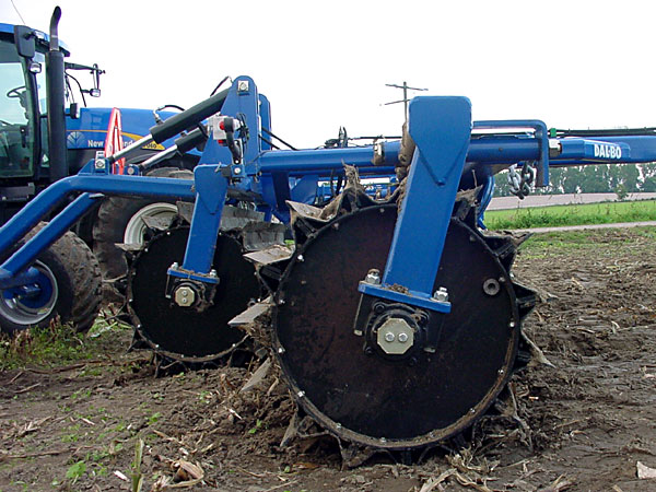 Die mit Abstand geringste Zerkleinerungswirkung zeigte die Schneidwalze der Firma Dal-Bo, die über quer zur Fahrtrichtung auf dem Walzenumfang angeordnete Hartmetall-Schneidmesser verfügt. Dadurch ist eine Schnittlänge von 15 cm fix vorgegeben. Unter den gegebenen Voraussetzungen konnte diese Walze weder im Silomais noch im CCM-Stroh eine für die Maiszünslerbekämpfung ausreichende Bearbeitung des Erntematerials gewährleisten. Allerdings muss man berücksichtigen, dass beim Testeinsatz sehr ungünstige Bedingungen vorlagen. Die Messer der Schneidwalze konnten das außerordentlich zähe Maisstroh nicht durchtrennen. Wie Erfahrungen aus anderen Einsätzen zeigen, ist die Walze unter trockeneren Verhältnissen und bei abgereiftem, sprödem Maisstroh durchaus in der Lage, die Strohmatte zu durchschneiden und auch mit Hilfe des Walzenkörpers Stoppelreste und Stängel zu zerquetschen. Die Bearbeitungsintensität hängt bei diesem Gerät also sehr stark von den Bodenbedingungen und von den Eigenschaften der Ernterückstände ab.