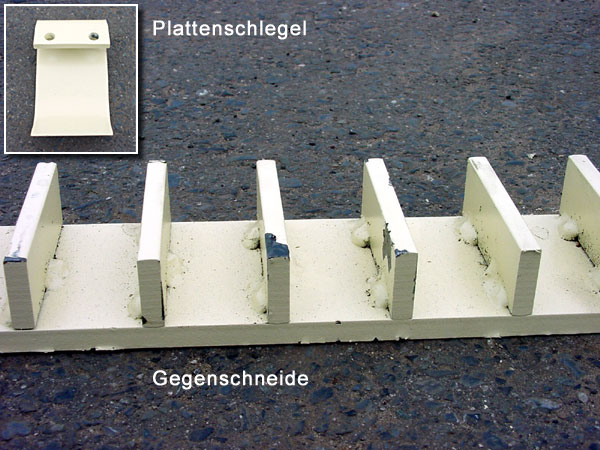 Großer Plattenschlegel (kleines Bild) und Gegenschneide beim Dücker UM 27