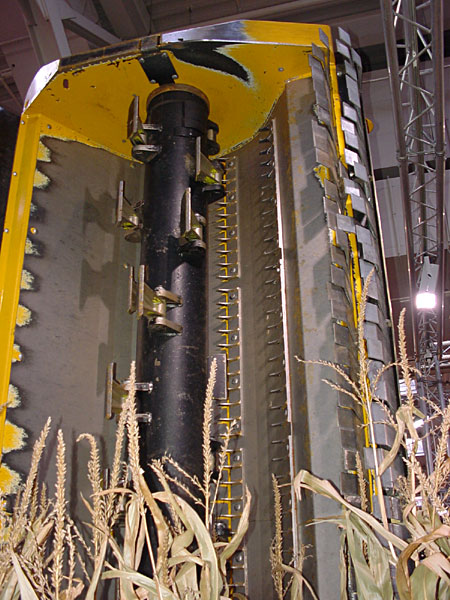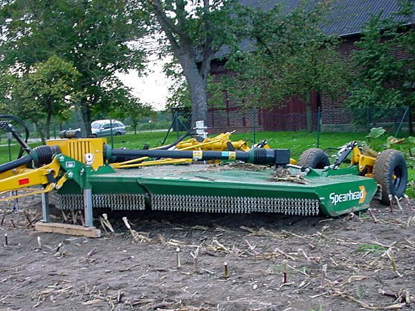 Der Schlegelmulcher mit kleinem Plattenschlegel von der Firma Spearhead hatte als einziger Schlegelmulcher keine Gegenschneide oder Zerkleinerungsleiste. Die fehlende Gegenschneide soll durch eine sehr hohe Drehzahl ausgeglichen werden. Die hohe Rotordrehzahl und der kleine Rotordurchmesser können allerdings auch den relativ hohen Zapfwellen-Leistungsbedarf im CCM-Stroh verursachen. Ingesamt liegt dieses Gerät beim Silomais im oberen, beim CCM im unteren Mittelfeld.