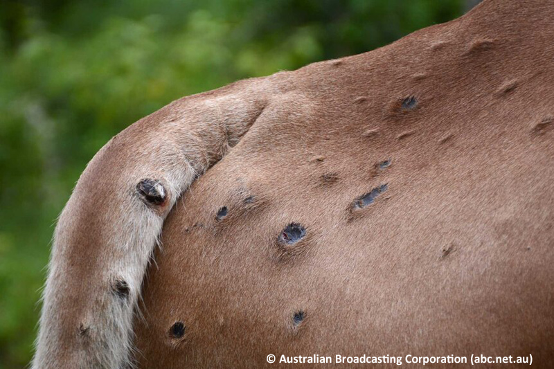 Erkrankte Tiere zeigen hohes Fieber, geschwollene Lymphknoten, starken Speichel- und Tränenfluss, Appetitlosigkeit und Gewichtsverlust - im Verlauf der Erkrankung entwickeln sich am ganzen Körper die typischen Hautknoten von 0,5 - 5 cm Durchmesser sowie eitriger Nasenausfluss, Euterentzündungen und Abszesse. Todesfälle sind selten, Aborte können vorkommen, der Leistungseinbruch ist enorm.