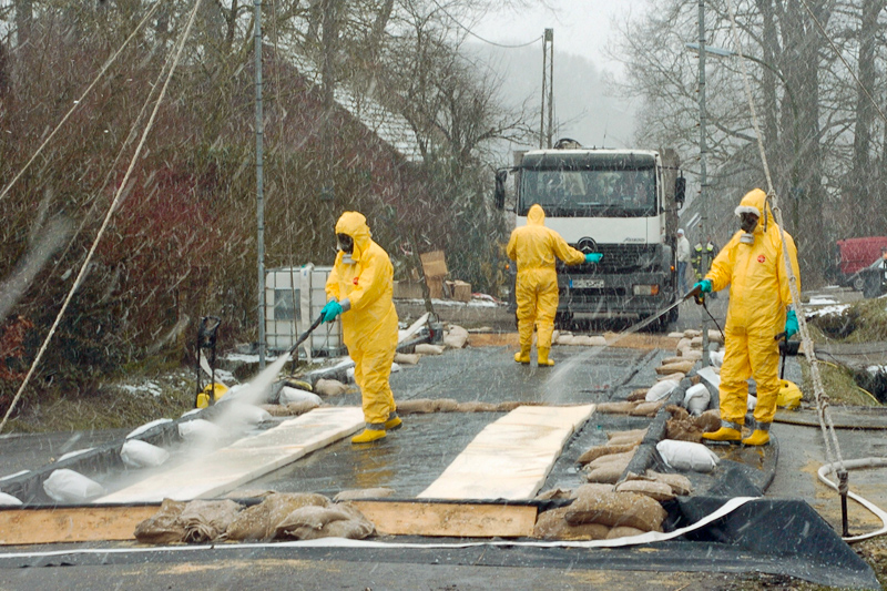 Weiterhin wird um das gefährdete Gebiet eine Pufferzone von doppelter Größe, also 30 km Radius eingerichtet. Von dort dürfen Schweine nur national transportiert werden.