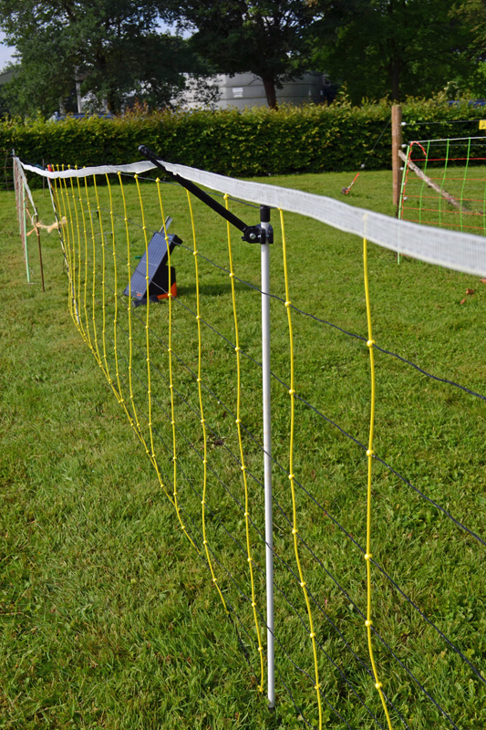 Mobile Litzenzäune müssen aus mindesten fünf stromführenden Litzen bestehen. wobei die unterste Litze nicht höher als 20 cm über Bodenniveau liegen darf. Ein Unterkriechen oder Untergraben durch große Beutegreifer soll durch die Stromführung in Bodennähe verhindert werden. Die Eckpfähle bei Litzenzäunen müssen aus geeigneten stabilen Pfählen bestehen, die in den Boden eingeschlagen werden können.
