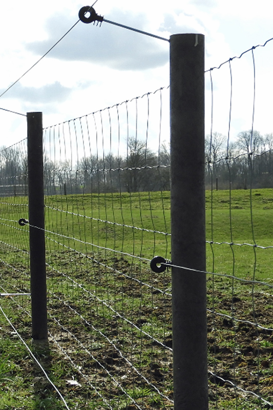 Insgesamt müssen mindestens fünf stromführende Litzen installiert werden. Um die Förderrichtlinie für stationäre Litzenzäune zu erfüllen, sollten die stromführenden Litzen in den Abständen von 20/40/60/90/120 cm angebracht werden. Der Abstand zwischen der untersten stromführenden Litze und dem Boden darf an keiner Stelle höher als 20 cm sein und sollte regelmäßig von Bewuchs befreit werden. Elektrozäune stellen einen wirksamen Schutz gegen große Beutegreifer dar.