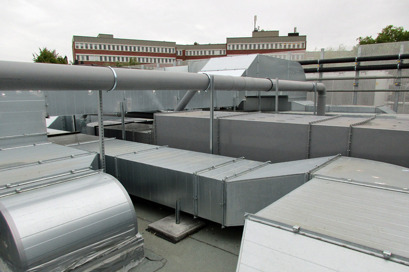 Spezialisten des Lüftungsbaus arbeiten derzeit intensiv daran, alle Anforderungen an die Zu- und Abluft im Laborneubau der LUFA NRW umzusetzen. Gemäß den Vorschriften für chemische Labore muss die Raumluft achtmal pro Stunde ausgetauscht werden. Bei einer Gesamtfläche des Neubaus von 1400 m² und einer Raumhöhe von 3,3 m sind dies bis zu 35000 m³ Luft, die pro Stunde im Vollbetrieb gewechselt werden müssen. Nicht nur der gesamte Raum, auch einzelne Laborgeräte und -einrichtungen haben Absaugvorrichtungen mit einem definierten Ab- und Zuluftbedarf. So ist zum Beispiel in Laborabzügen ein 150- bis 200facher Luftwechsel erforderlich.
