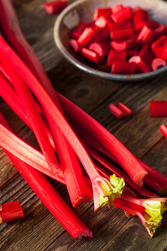 Die unterschiedliche Färbung des Stiels gibt Aufschluss über den Geschmack. Rhabarber mit einem grünen Stiel und grünem Fruchtfleisch ist besonders sauer und eignet sich für Marmeladen und Kompott. Rotstielige Stangen mit grünem Fruchtfleisch haben einen leicht herben, weniger sauren Geschmack. Sie eignen sich für herzhafte Gerichte und Kuchenfüllungen. Ist der Rhabarber rotstielig mit rotem Fruchtfleisch, enthält er ein leichtes Himbeeraroma und ist besonders mild. Die ideale Verwendung ist in Grütze oder Obstsalat. Besonders zarte Stangen haben hellrote Stiele mit rosa Fruchtfleisch und einen mild-säuerlichen Geschmack.
