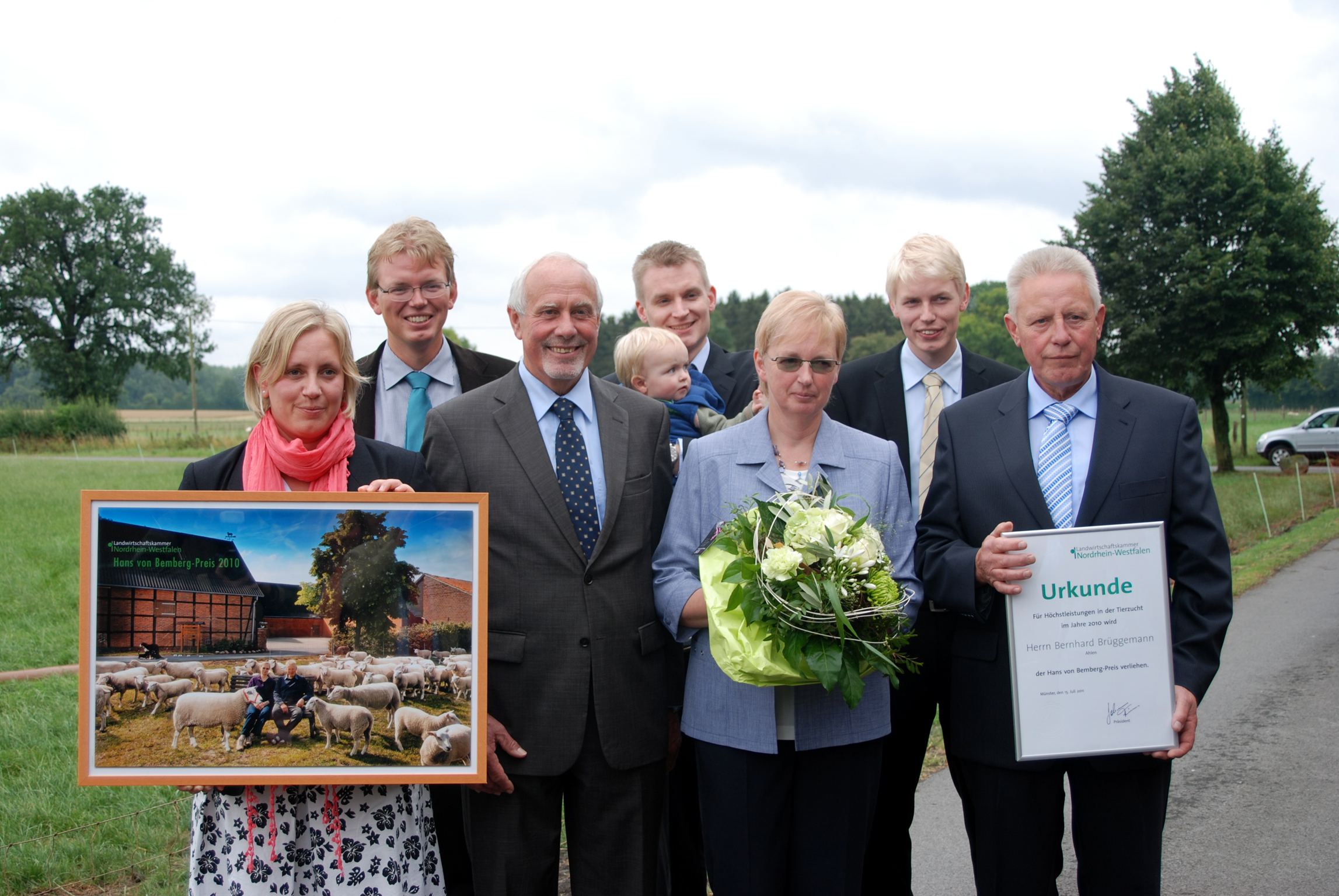 Der Hans-von-Bemberg-Preis für die beste tierzüchterische Leistung des Jahres 2010 geht an Bernhard Brüggemann aus Ahlen im Kreis Warendorf. Wie der Präsident der Landwirtschaftskammer Nordrhein-Westfalen, Johannes Frizen, anlässlich der Preisverleihung erklärte, hat sich Bernhard Brüggemann mit großem Engagement für die Zucht der Texel-Schafe eingesetzt. „Die Jury hat als Preisträger für 2010 den Texel-Züchter, Bernhard Brüggemann aus Ahlen, vorgeschlagen und dabei herausgestellt, dass er mit seinen züchterischen Leistungen und Erfolgen die Anforderungen an einen Hans von Bemberg-Preisträger in besonderer Weise erfüllt“, sagte Frizen.