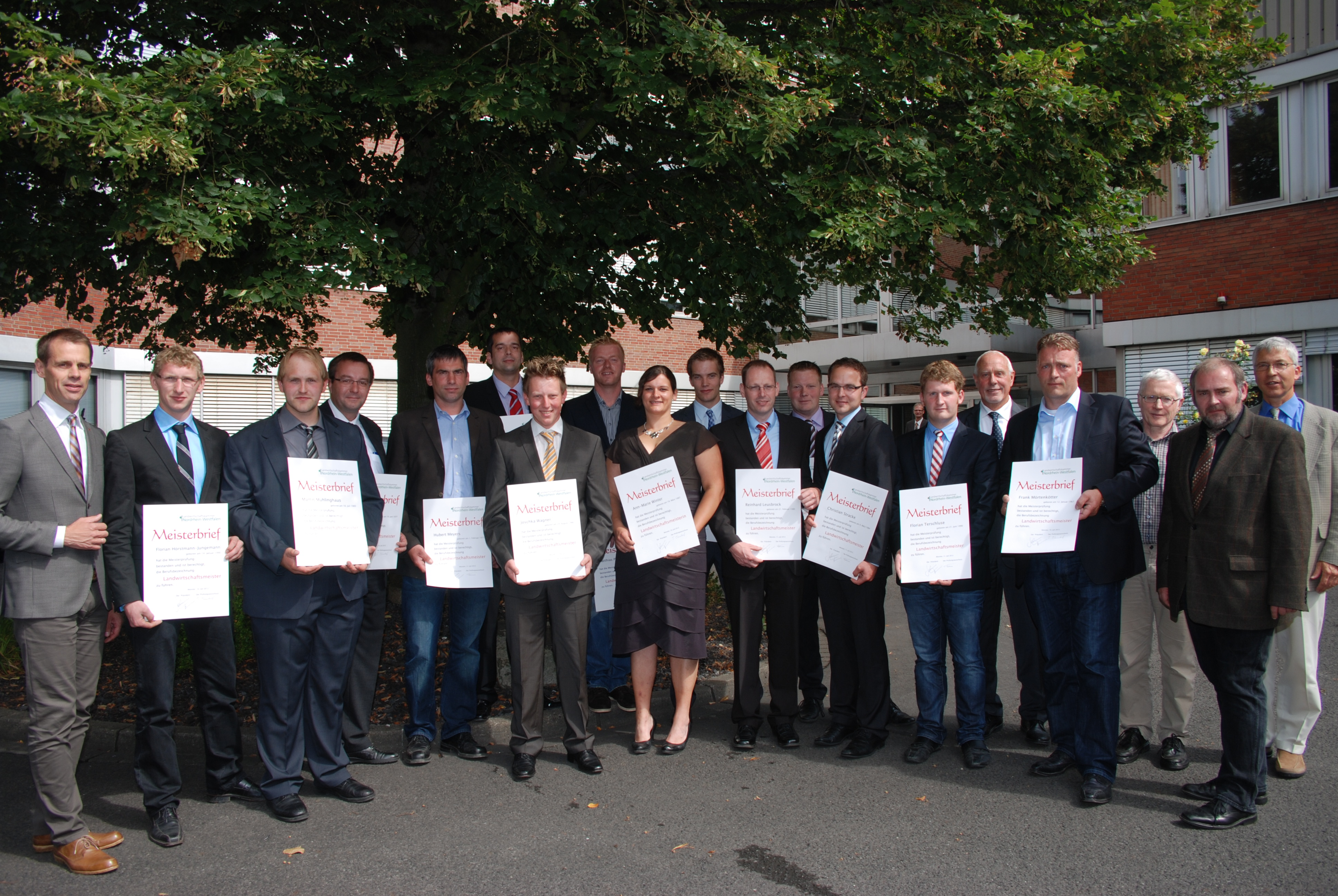 Die ersten Landwirtschaftsmeister, die in Nordrhein-Westfalen ihre Prüfung nach dem Besuch einer zweijährigen Teilzeitfachschule abgelegt haben, erhielten am 24. August in Münster aus der Hand von Landwirtschaftskammer-Präsident Johannes Frizen ihre Meisterurkunden. Die 14 frischgebackenen Landwirtschaftsmeister haben sich in den vergangenen beiden Jahren, überwiegend an den Wochenenden, am Berufskolleg der Landwirtschaftskammer Nordrhein-Westfalen in Münster-Wolbeck auf die Meisterprüfung vorbereitet. Mit diesem neuen Unterrichtsangebot bietet die Landwirtschaftskammer Nordrhein-Westfalen seit 2009 erstmals auch für Landwirte die Möglichkeit, sich beruflich weiterzubilden und gleichzeitig den Arbeitsplatz zu behalten. Für Gärtner wird der Teilzeitunterricht bereits seit einigen Jahren angeboten, hier hat die Landwirtschaftskammer eine große Nachfrage nach dieser Unterrichtsform festgestellt.