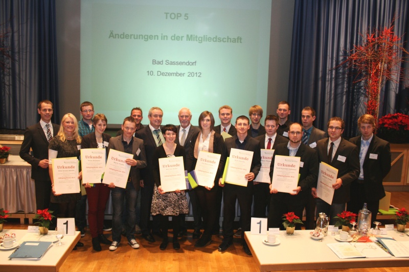 Die Landwirtschaftskammer Nordrhein-Westfalen hat erneut Nachwuchsförderpreise verliehen, mit denen die jeweils besten Absolventen der Abschlussprüfungen in den grünen Berufen, der Meisterprüfungen sowie der Fachschulen geehrt wurden. Präsident Johannes Frizen und Horst Becker, Parlamentarischer Staatssekretär im Landes-Landwirtschafts- und Umweltministerium, überreichten die Förderpreise, die mit einer Urkunde und einem Buchgeschenk verbunden sind, am 11. Dezember während der Hauptversammlung der Landwirtschaftskammer in Bad Sassendorf. Die Landwirtschaftskammer betreut zurzeit etwa 9.000 Auszubildende und knapp 1.000 Studierende in den Fachschulen für Landwirtschaft und Gartenbau.