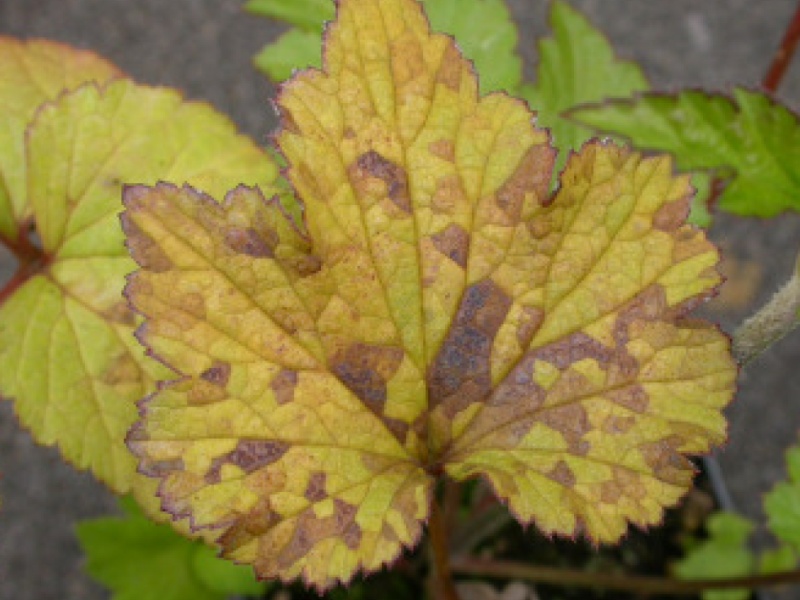 Bei einem Befall mit Blattälchen (Aphelenchoides-Arten) entstehen an den Blättern eckige gelbe bis braune Flecken, die durch die Blattadern begrenzt sind. Bei starkem Befall sterben die Blätter ab. Die Älchen leben im Blattinnern und besaugen dort die Pflanzenzellen. Die Verbreitung erfolgt über die feuchten Blätter: Die Nematoden dringen anschließend in die Blätter ein.