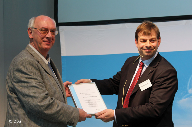 Der Vorstand der Deutsche Landwirtschafts-Gesellschaft (DLG) hat den Berater und Referenten für Technik in der Außenwirtschaft bei der Landwirtschaftskammer Nordrhein-Westfalen, Dr. Norbert Uppenkamp, mit der Max-Eyth-Denkmünze in Silber ausgezeichnet. Damit ehrt die DLG, wie DLG-Vizepräsident Hubertus Paetow in seiner Laudatio hervorhob, dessen große Verdienste um die Landtechnik und um die DLG. Paetow überreichte die Medaille in der vergangenen Woche im Rahmen einer Fachtagung in Alpen am Niederrhein.