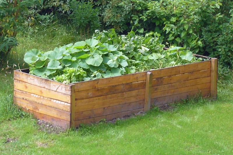 Auch wenn die spätere Bearbeitung einfach und bequem ist, muss zunächst das Beet aufgebaut werden. Als Material verwendet man in der Regel umweltfreundlich imprägniertes Holz, aber auch luft- und wärmedurchlässige Hohlblocksteine sind gut geeignet. Welche Form man wählt, ist Geschmackssache, bewährt hat sich ein Rechteck mit einer Länge von 5 bis 7 Meter, 1,2 Meter Breite und 0,8 bis 1 Meter Höhe. Die Konstruktion muss in jedem Fall durch Querverstrebungen oder Drahtumspannung stabil sein, damit es später nicht durch den Druck des Füllmaterials auseinanderbricht.