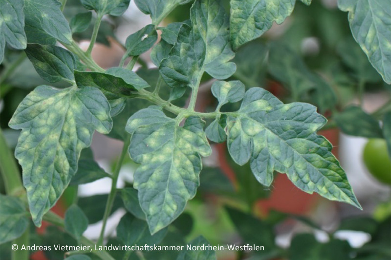 Tomaten im Gewächshaus werden im Sommer bei warmer Witterung gelegentlich von der Samtfleckenkrankheit (Cladosporium fulvum) befallen. Ein Befall mit dieser Pilzkrankheit führt nach Angaben des Pflanzenschutzdienstes der Landwirtschaftskammer Nordrhein-Westfalen dazu, dass sich an den Blättern gelbliche, unscharf begrenzte Flecken bilden. Später entsteht dann an der Blattunterseite ein grau-brauner, leicht samtartiger Pilzmycelbelag. Bei starkem Befall vergilben die Blätter und sterben zum Teil sogar ab.