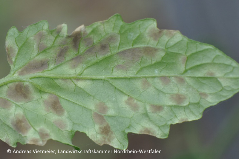 Zu einem Befall der Tomatenfrüchte kommt es aber nicht. Auch der Fruchtertrag wird durch den Befall der Blätter kaum gemindert. Der Ertrag könnte allenfalls dann geringer ausfallen, wenn der Befall bereits sehr früh eintritt und die Entwicklung der Tomatenpflanzen deutlich beeinträchtigt. Eine anhaltend hohe Luftfeuchte im Gewächshaus begünstigt einen Befall mit der Krankheit.